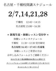 2月のレッスンスケジュール